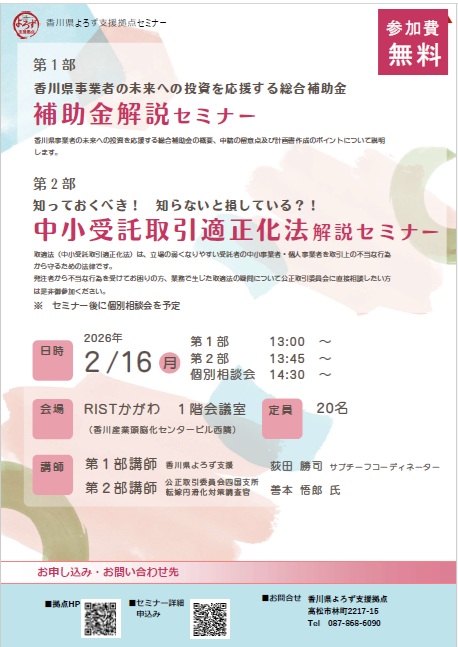 - 香川県内の中小企業・小規模事業者、また創業・起業を検討している方