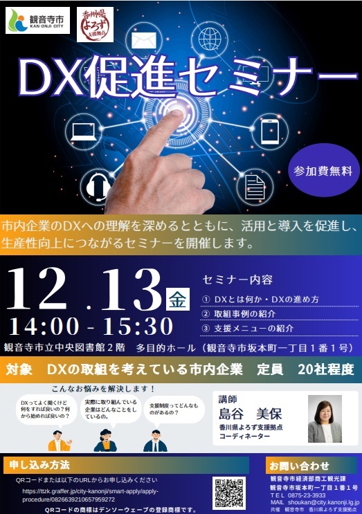 | 受付終了 | 12月13日(金) 14:00 | WEB関連・IT活用 | DX促進セミナー |